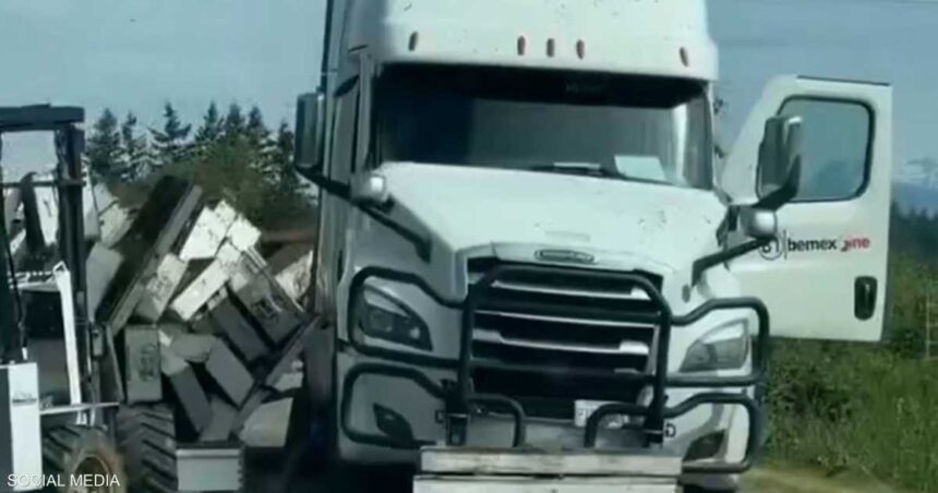 وأوضحت إدارة الطوارئ في المقاطعة أن الحادث وقع في ساعة مبكرة من صباح الجمعة، بعد أن أخطأ السائق، الذي لم يُصب بأذى، في تقدير أحد المنعطفات الضيقة، مما أدى إلى انقلاب مقطورة الشاحنة في خندق.