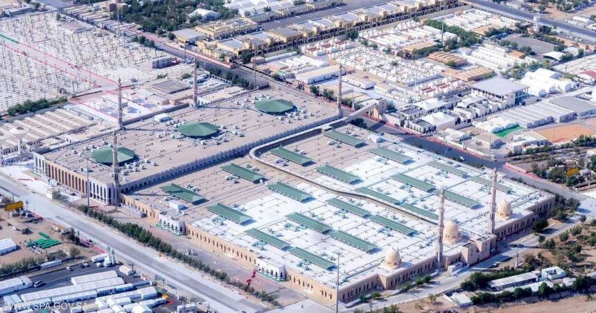 ويتضمن المسجد (610) مكيفات دولابية و(59) وحدة هواء متجدد، و(185) مروحة رذاذ في ساحاته، إضافة إلى (10) آلاف متر مربع من مساحته، و(37) كاميرا داخلية، و(35) كاميرا خارجية للمراقبة، فيما يضم (700) دورة مياه للرجال، و(300) دورة مياه للنساء، ويعمل فيه أكثر من (176) فنيا وعاملا خلال ذروة موسم الحج.