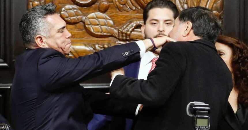 وأمسك رئيس الحزب الثوري المؤسسي المعارض أليخاندرو مورينو، رئيس مجلس الشيوخ جيراردو فرنانديز نورونيا، وهو من حزب مورينا الحاكم، بعد أن انتهى المشرعون من غناء النشيد الوطني إيذانا بنهاية جلسة مساء الأربعاء.