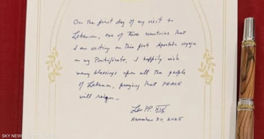 وكتب البابا: “في اليوم الأول من زيارتي إلى لبنان، أحد البلدين اللذين أزورهما في هذه الرحلة الرسولية الأولى في حبريّتي، أتمنى بفرحٍ بركات كثيرة لجميع شعب لبنان، مصليا أن يسود السلام”.