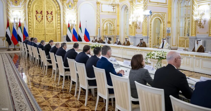 جاء ذلك خلال جلسة المحادثات التي عقدها الشيخ محمد بن زايد آل نهيان والرئيس فلاديمير بوتين في الكرملين في إطار زيارته الرسمية إلى روسيا. وأعرب رئيس دولة الإمارات في بداية اللقاء عن تمنياته أن يكون 2026 عام تنمية وتقدم في روسيا وازدهار وتطور للعلاقات الإماراتية ـ الروسية.