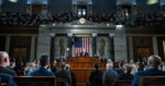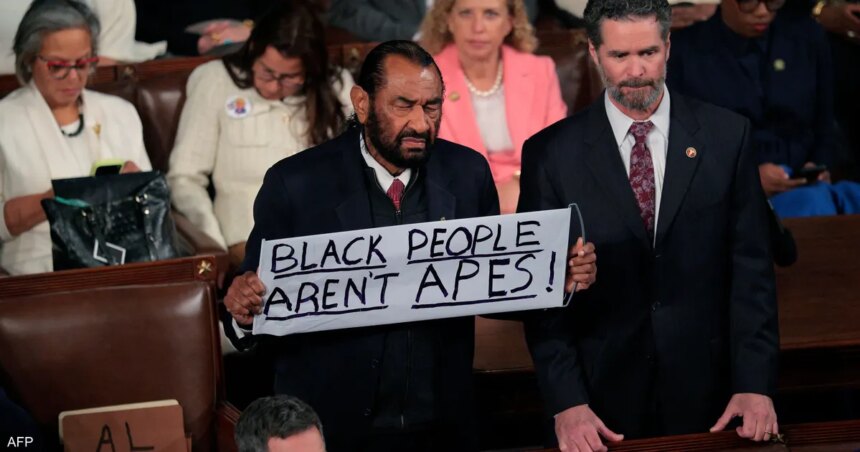وكان النائب عن ولاية تكساس، آل غرين، يقف مقابل ترامب مباشرة عندما رفع اللافتة قبيل إخراجه من مبنى الكونغرس، بينما كان بالإمكان سماع هتافات “أميركا أميركا أميركا”.