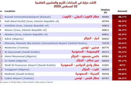 10 مدن عربية من بين 15.. الأشد حرارة خلال الـ24 ساعة الماضية