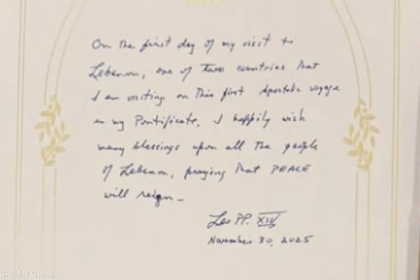 رسالة سجل الشرف.. ماذا كتب البابا بالقصر الرئاسي اللبناني؟