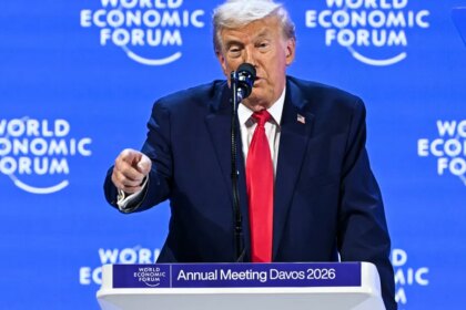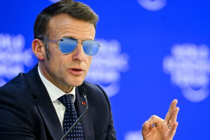 ماكرون يخاطب منتدى دافوس بنظارات شمسية زرقاء.. ما السبب؟